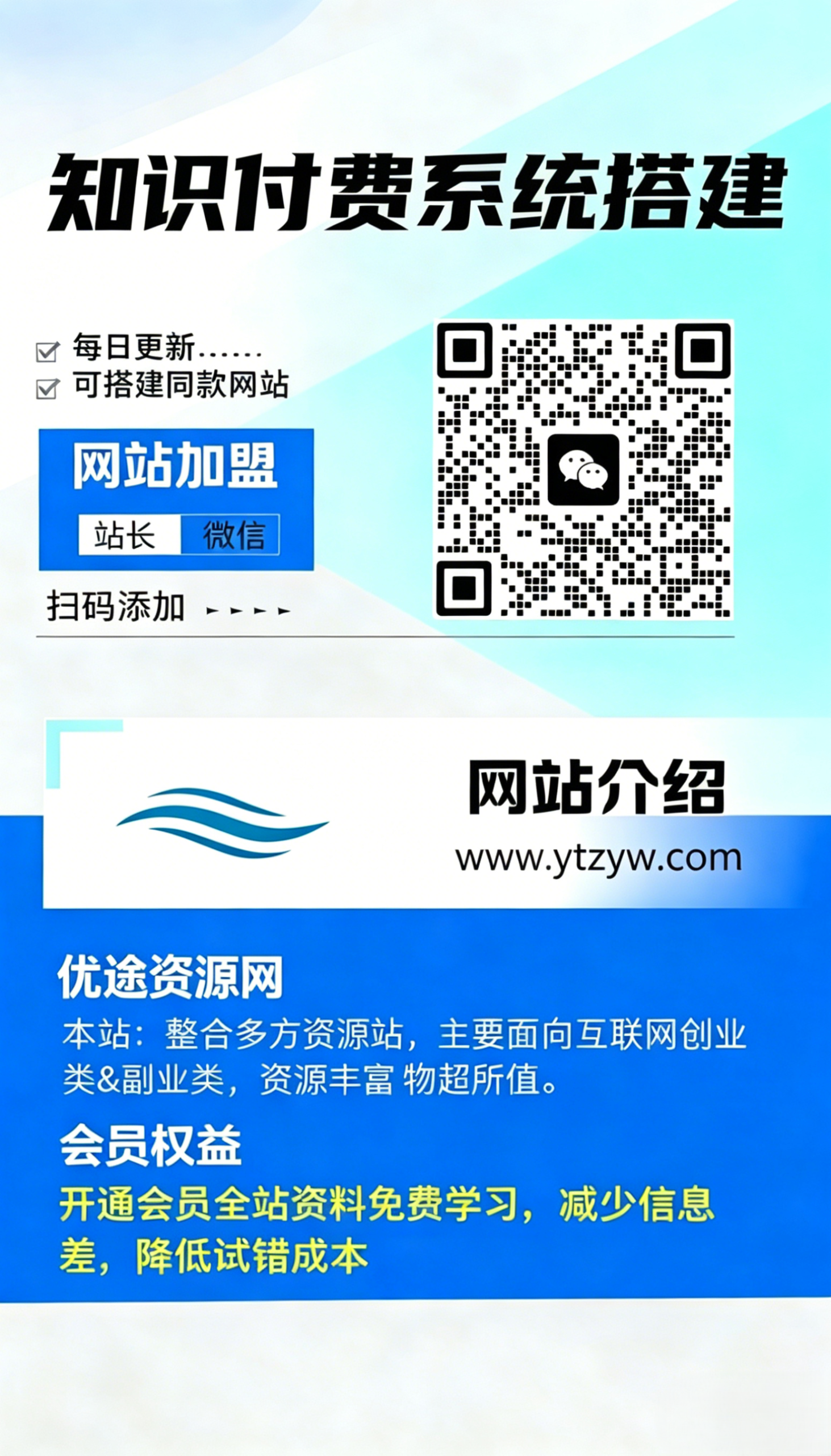 加盟商就是帮你搭建一个和优途资源网一样的知识付费网站平台,我教你做网站赚钱,网站是你自己的域名服务器,接入的是你自己的收款,你自己就是站长,就是平台老板,网站所有联系方式都改成你的 ,独立运营,网站所有的利润都是你的。